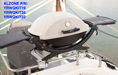 The Alzone Weber mount kit is an innovative way of attaching your Weber Q onto 19 to 32 MM round tube without the need to drill or weld.