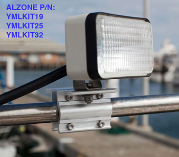 Just tighten the two Alzone light clamps onto your existing rail using the marine grade screws supplied.