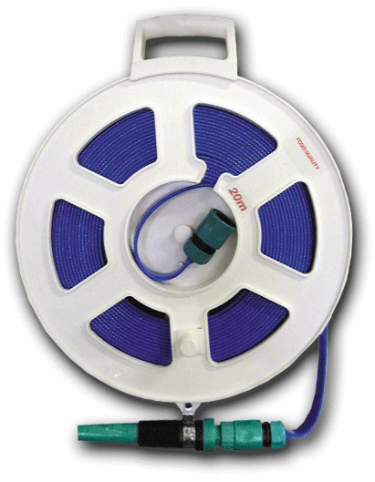 Superflat has 20 metre hose on a white cassette, Superflat hose