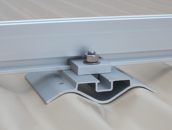 This corrugated foot mounting bracket provides a versatile solution to mounting Alzone standard rail onto corrugated roofing.