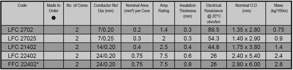 PVC Insulation and sheath 75°C